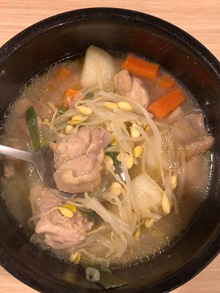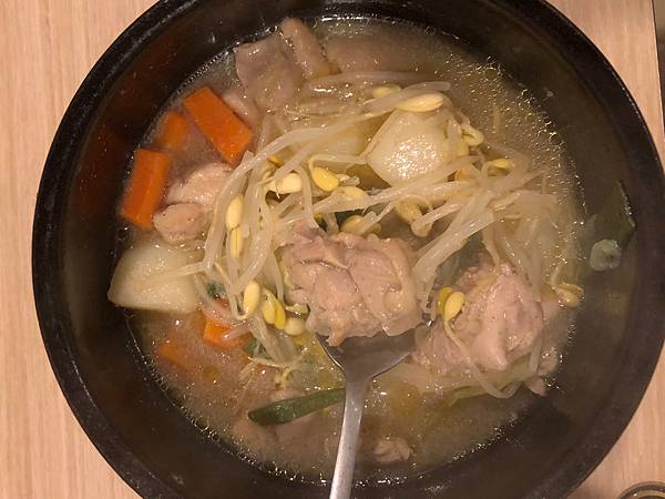 雞腿肉很嫩很好吃,胡蘿蔔也很鮮甜,湯有點偏鹹,但我本來就重口味的,湯連雞肉的鮮味都沒流失,雞肉有湯的味道,整個搭配的很契合。