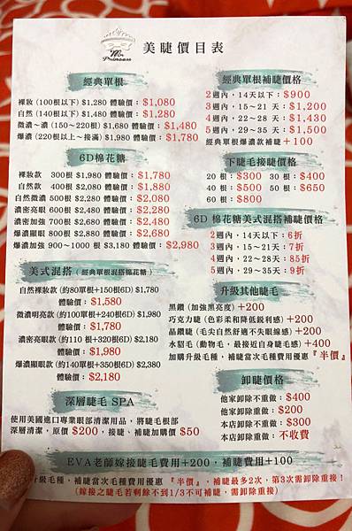 我先來把他們店裡的價目表放上來