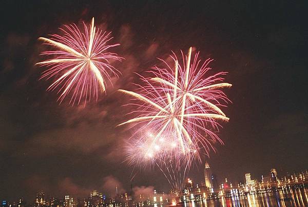 高空煙火就只有天空的煙火沒有對面的大樓燈光