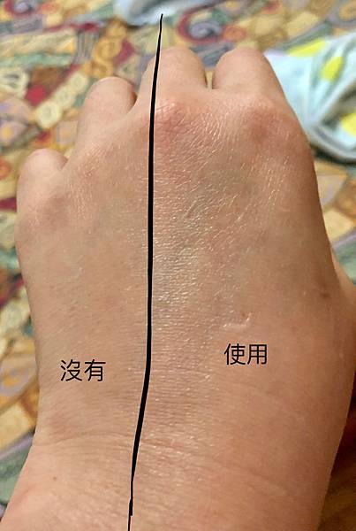 兩邊真的差很多,而且也沒過敏,試在手上也沒泛紅,因為是過敏肌膚,我的產品在使用都會先試在手上,然後才使用在臉上。