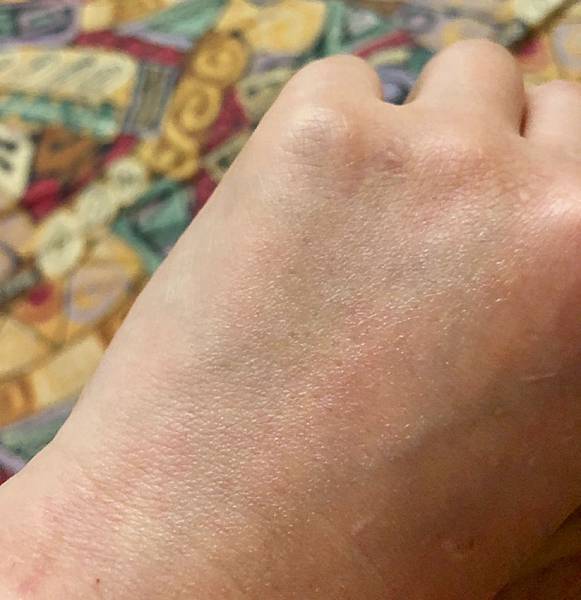 這是使用的那個手,有沒有看到沒有乾乾的,也沒有泛紅,手是透亮的,而且也沒刺激跟過敏,超好吸收又馬上水亮又感覺涼涼的,真的是夏天的保養聖品