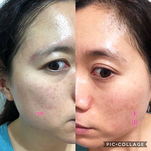 但是拍到使用完也有用手法按摩過後的那半邊臉,明顯的就顯白還透亮,泛紅減少並且毛孔是縮小的