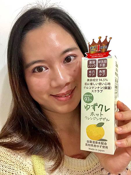 準備要來清潔臉部使用的是日本樂天卸妝洗臉2合1第一名產品YUZU柚子溫感卸妝凝膠