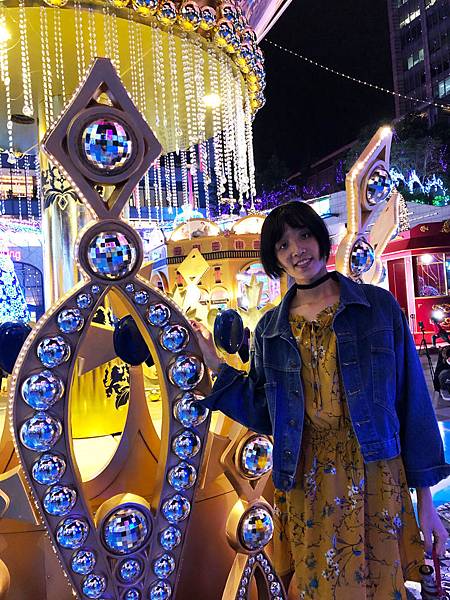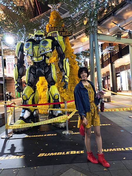 經過新光三越要過馬路到威秀時在還沒過馬路前發現一顆黃色的🎄前面還有大黃蜂
