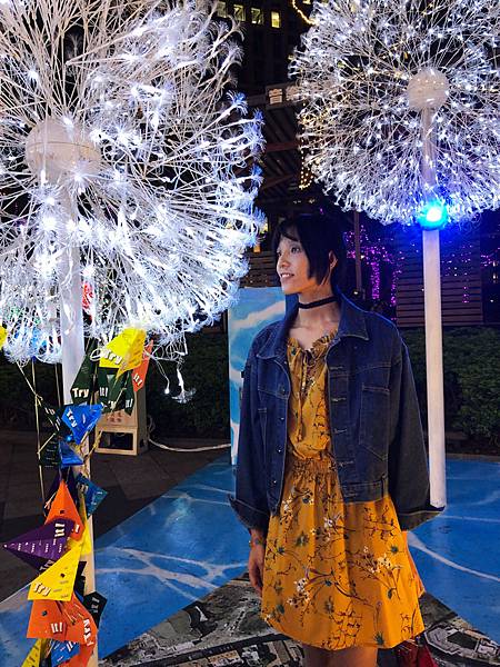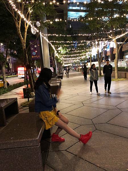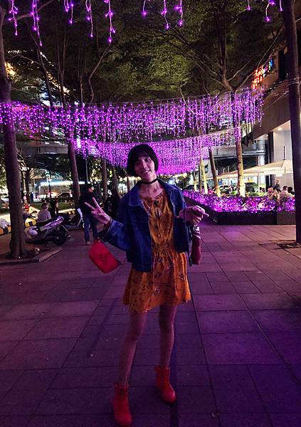 經過威秀後面的走廊要過馬路到101之前的樹上綁定的燈是紫色的!