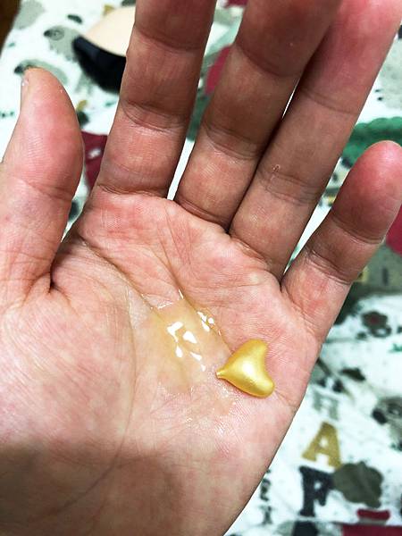 BC百匡靚顏抗皺淡紋賦活油是黃色的,我會先使用一點點在手上做測試看會不會過敏。這是擠出來的油!