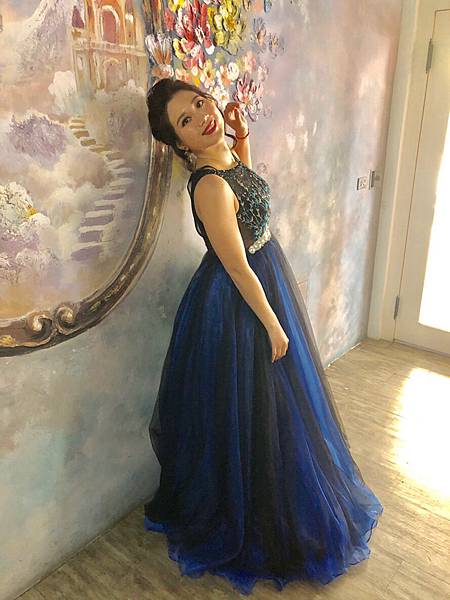 因為是一個很特別體驗,第一次穿手工禮服,以前都穿那種普通的禮服,聽艾薇老師說,她為了給客人最好的服務所以都去國外挑選最好的禮服回來,禮服的好壞是看重量決定價格的,所以以磅數計價還有設計師的設計計算禮服的費用,她希望在她的巧手下可以把每個女生漂亮的地方,都能透過她的妝髮與禮服展現出女人的撫媚與性感還有美麗。
