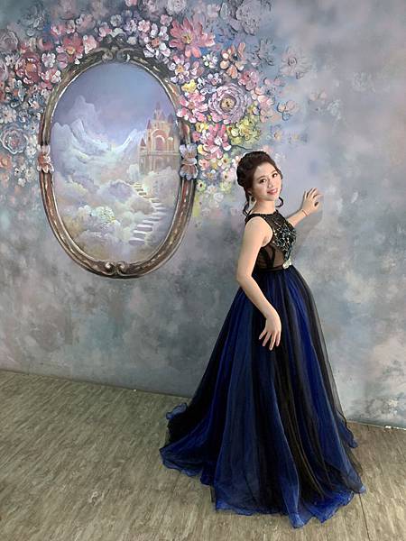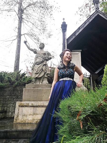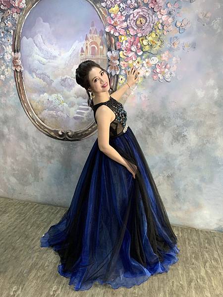 所以我到現場也知道攝影師要去哪裡拍,所以最後選中這套歐美漂亮像公主一樣的黑色正式宴會穿的澎裙禮服。