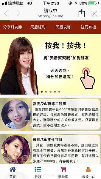 天后購物網了解女生的需求,也想幫小資女讓小資女可以輕鬆美麗,順便賺取一些費用,這個天后購物網,如何註冊與賺錢捏!讓我們繼續看下去。