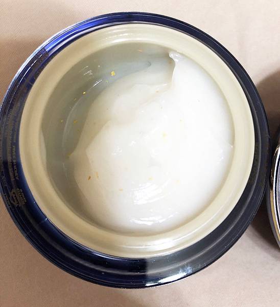 打開後內容物有點帶有金箔的感覺,裡面是白色帶有金點。