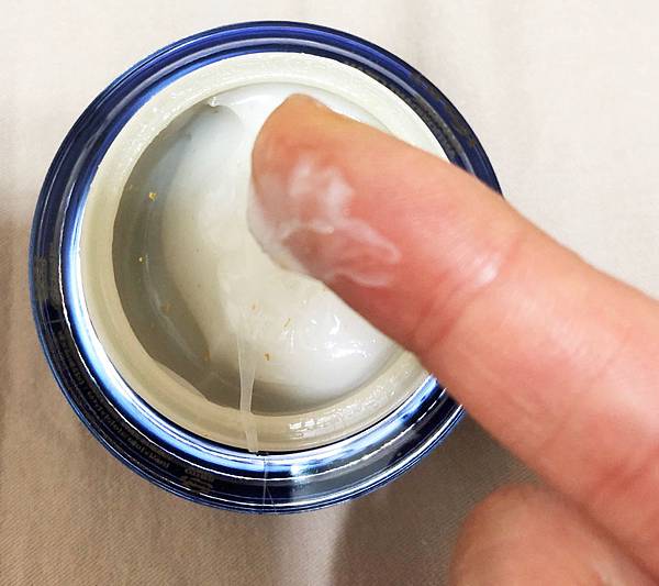 摸起來很舒服,像是霜狀又有點水水與像起司一樣會牽絲。