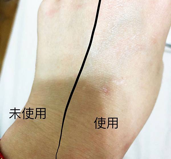 手上就有如此的差異了,再來就是臉上的表現了,測試過敏也ok!敏感肌適用。