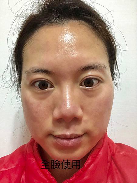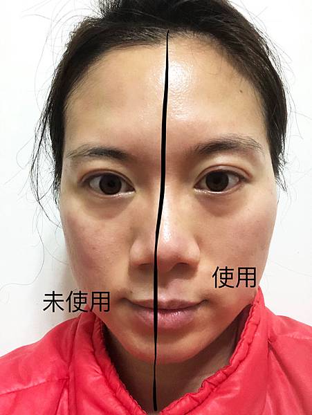 使用後透亮、膚色均勻、泛紅減緩、眼睛比較上揚、嘴角也是。