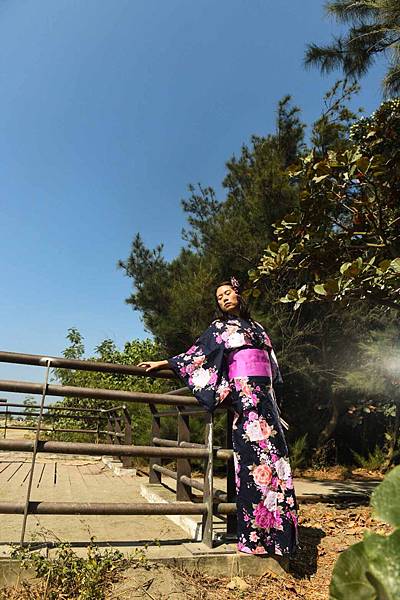 我們挑了這款深藍色紫色蝴蝶結的浴衣。