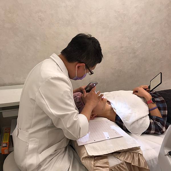 因為之前我怕我的體質所以一直沒做過醫美,所以醫師很詳細跟我說明皮膚狀況,給我鏡子細看皮膚。