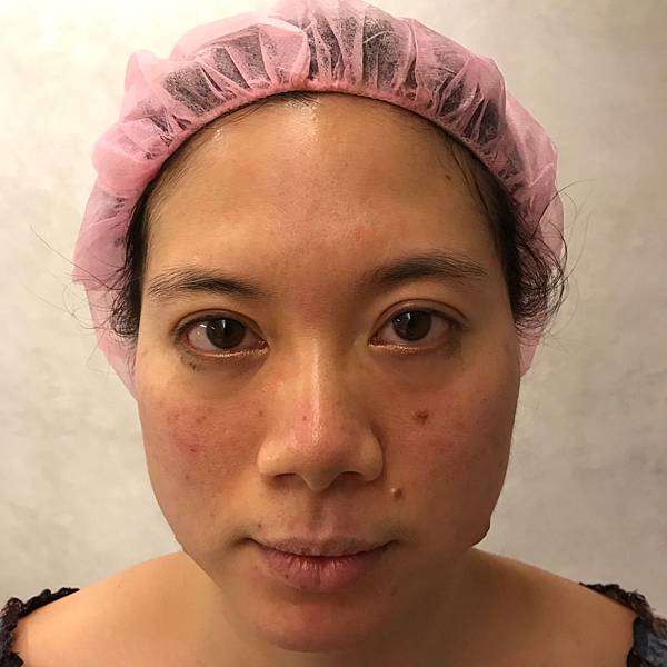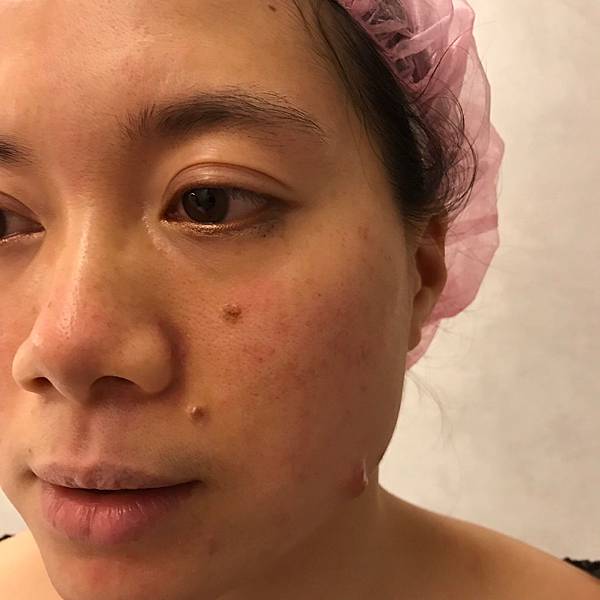 最後把麻藥卸掉!整個臉還是麻麻的!這是施打前的樣子膚況