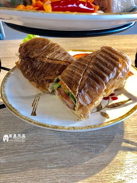 越南麵包去熱壓,裡面包生菜肉與番茄還有越式醬。