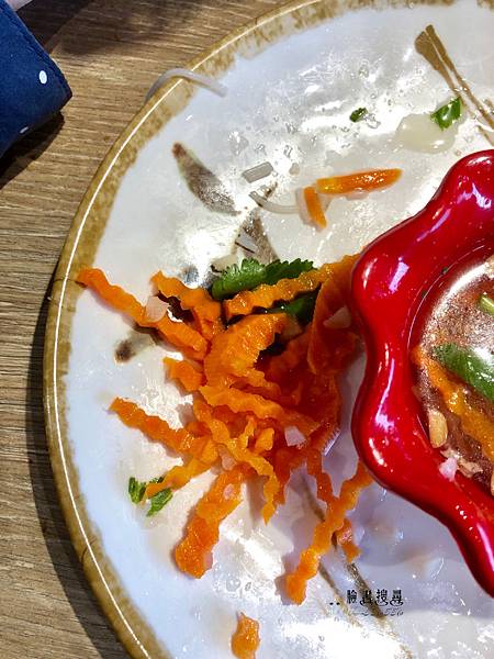旁邊放了生紅蘿蔔與辣椒,這個就有點辣辣!
