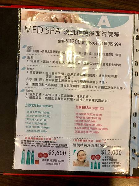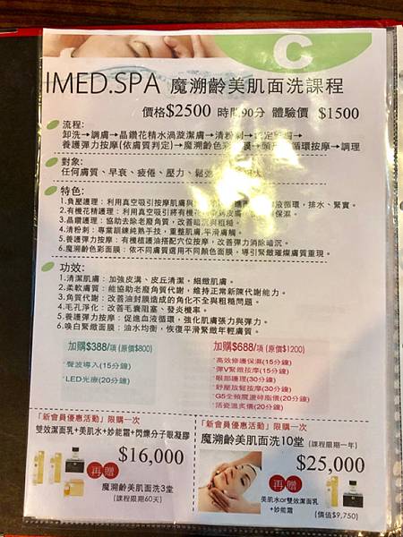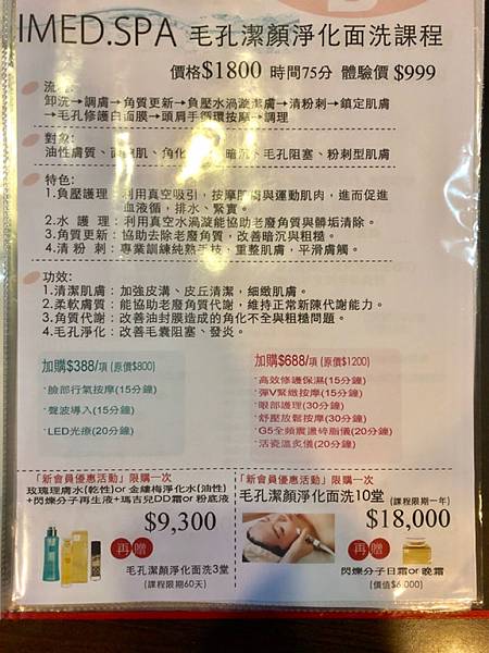 ⬆️⬆️面的是Imed.SPA的三種面洗課程,而且我看到價位覺得很實在,我去的spa店都沒看到這樣的價格,好嚕!如果對面洗有興趣的也可以用體驗價來體驗看看唷!體驗價只能三選一。