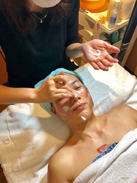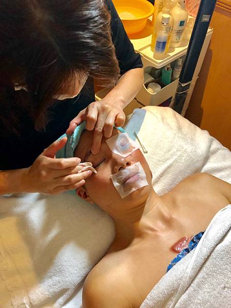 美容師在敷臉時很細心,會順便眼睛與嘴巴一起幫你做保養。