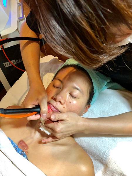 美容師會先幫你做半邊臉,然後給你看效果,在體驗的時候,真的感覺很特別,有水跑出來,然後再從你臉上吸走水,而且美容師第一次是走臉部肌膚的直線,再從內而外的走法,感覺起來好像是有人在你臉上種草莓的感覺,哈哈哈!