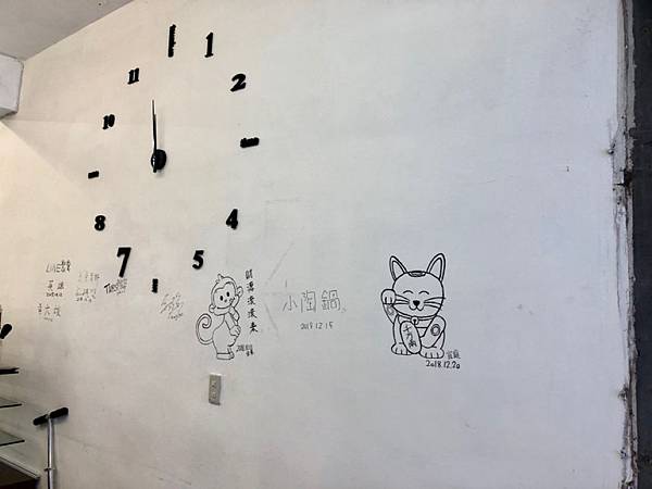 店裡牆上有一些小裝飾還有一個大鐘,中午12點開門到下午2點,晚上5點到早上凌晨24點。