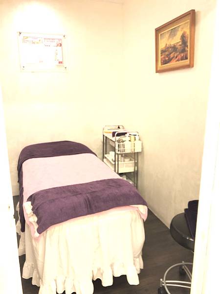 這是我的美容室,一張整潔的床,空間不會塞滿東西,很寬敞,很乾淨。