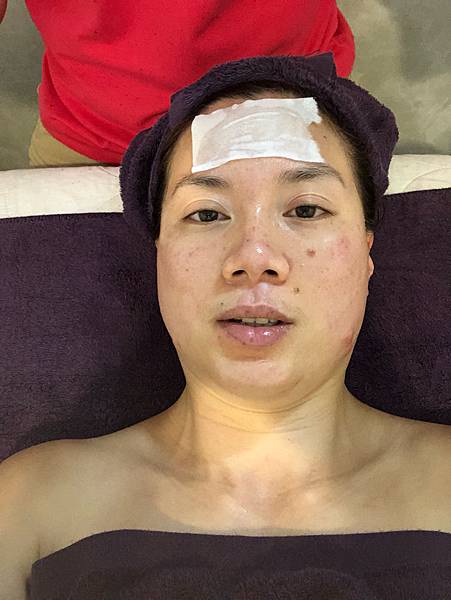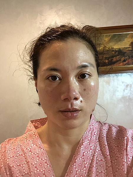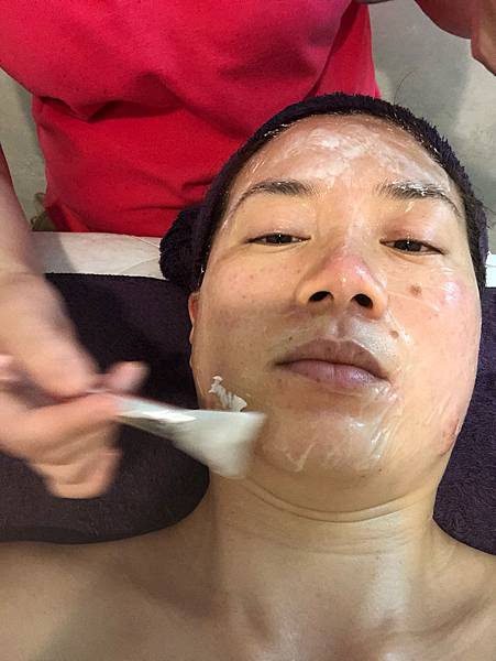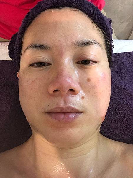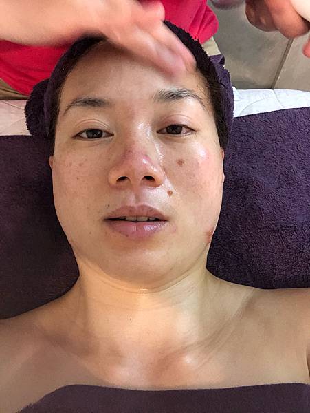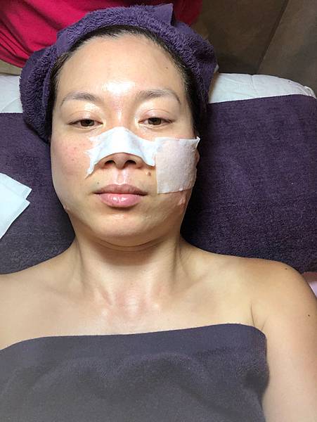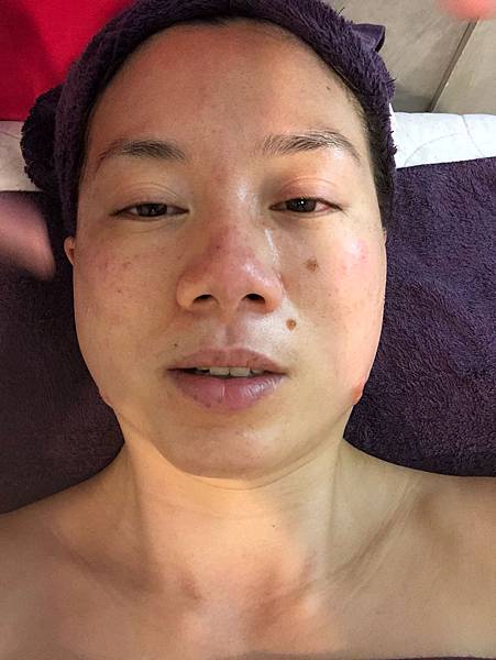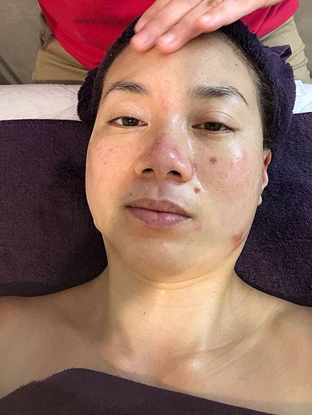 美容師說因為我的T字部位很乾又加上港清完粉刺還紅紅的,所以T字部位幫我敷舒緩的。