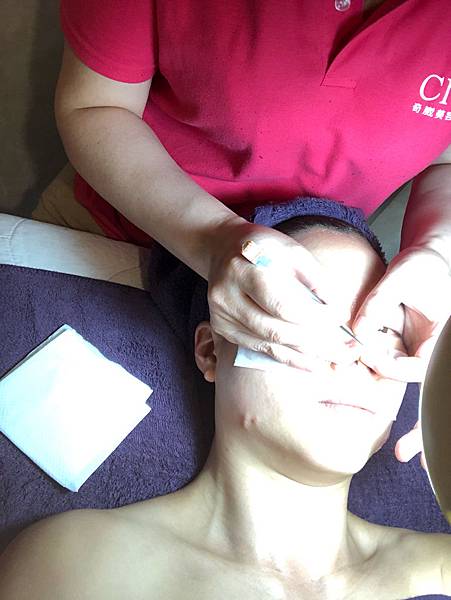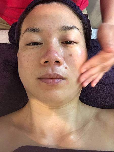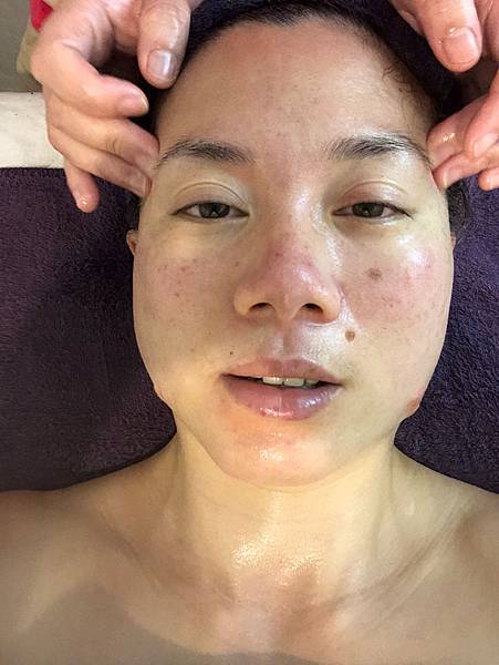 因此美容師也用冷水幫我把臉部擦乾淨。