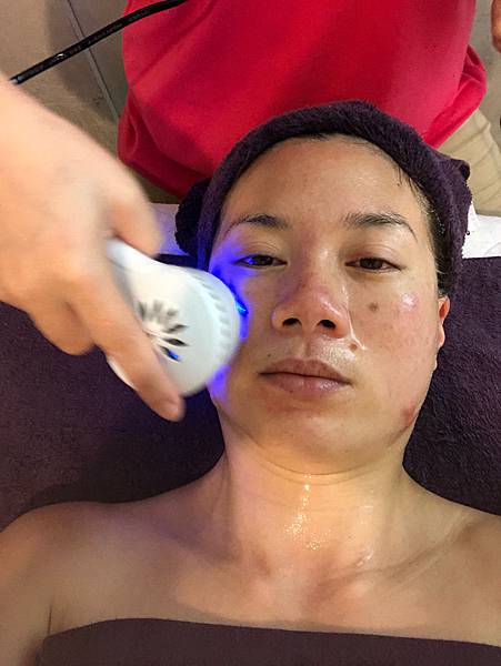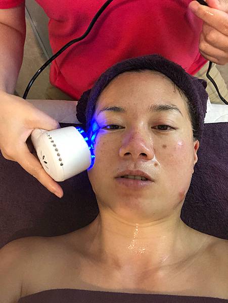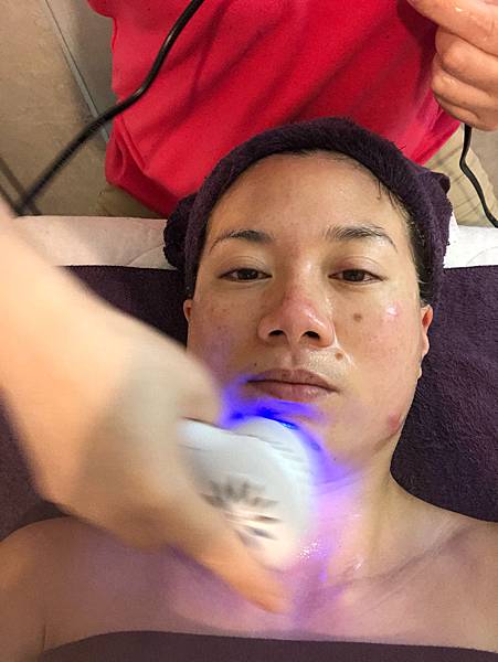 開始導入,真的很舒服,冰冰涼涼的儀器在我臉上慢慢的按摩推開,臉上的馬上被肌膚吸收,這種感覺很舒服,而且肌膚確實有在吸收這個日本的產品達到深層的美容。