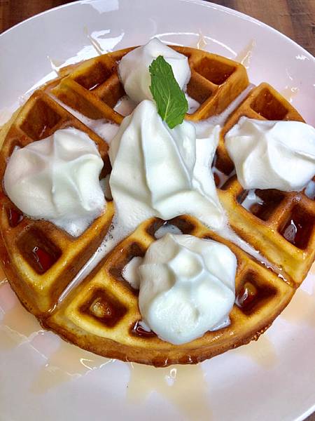 蜂蜜不會太甜,而且奶油也不會太多,鬆餅鬆脆,真的好好吃,我喜歡,還有一片薄荷葉。