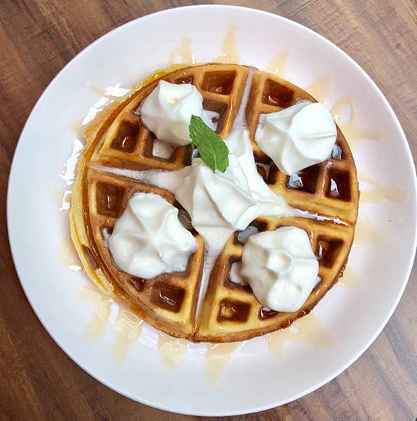 超對味,鬆餅除了搭配咖啡以外還能搭配果汁來吃。