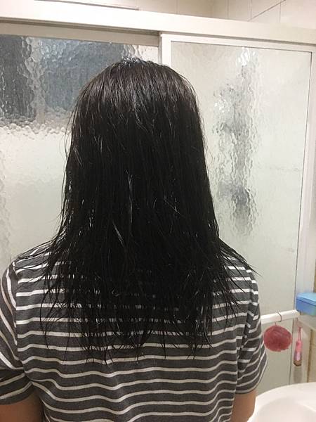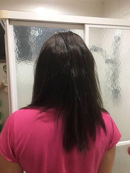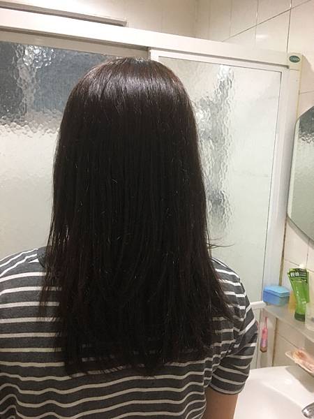 然後髮尾看起來柔亮,因為我的髮尾是使用保濕型的洗髮精只洗髮尾,所以看起來烏黑柔順。