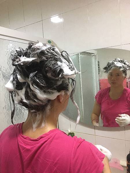 開始洗我的頭髮了,因為是髮根強健,所以我會加強頭皮的清潔來強化髮根。