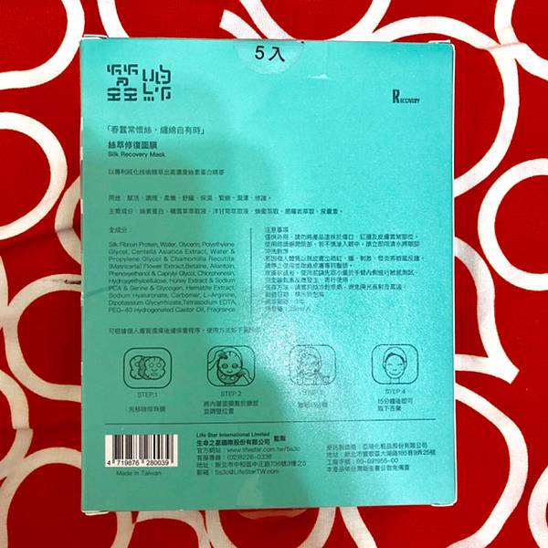 手上這盒,我要謝謝女人知己試用大隊,邀請我入選體驗生命之星股份有限公司的5S3C蠶絲絲萃修復面膜。