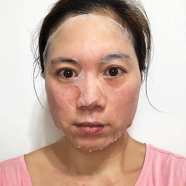 我是屬於臉部肌膚很乾的人,所以感覺我的臉部肌膚很缺水,敷上去後就一直在迅速的吸收面膜的精華液,我一直覺得緊緊的。