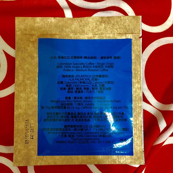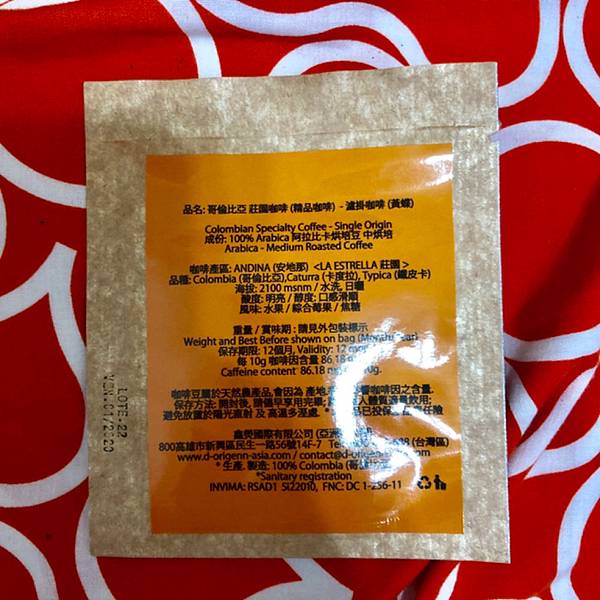 這一杯哥倫比亞綠嘴鳥的耳掛,喝下去順口,不苦不酸不澀,味道回甘,咖啡清香。