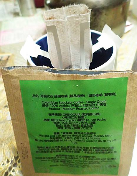 我與我的哥倫比亞-綠嘴鳥耳掛咖啡。