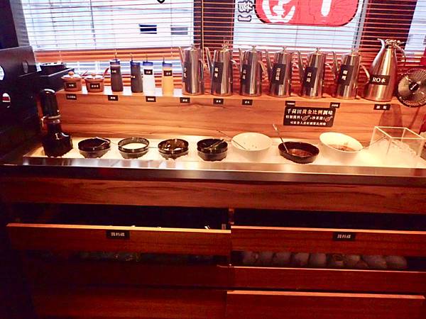 這裡是醬料區,很多醬料,但因為我喜歡吃火鍋吃原味,所以我根本不會去取醬料,因為新鮮的食材就是要吃原味呀!