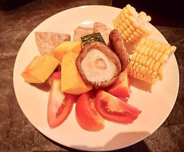 菜真的超鮮跟鮮甜,我有吃到香菇,香菇很大朵,還有南瓜跟地瓜還有紫洋蔥,及紅菜還有高麗菜,菜都很新鮮很搭火鍋,蔬菜類真的很多樣化。