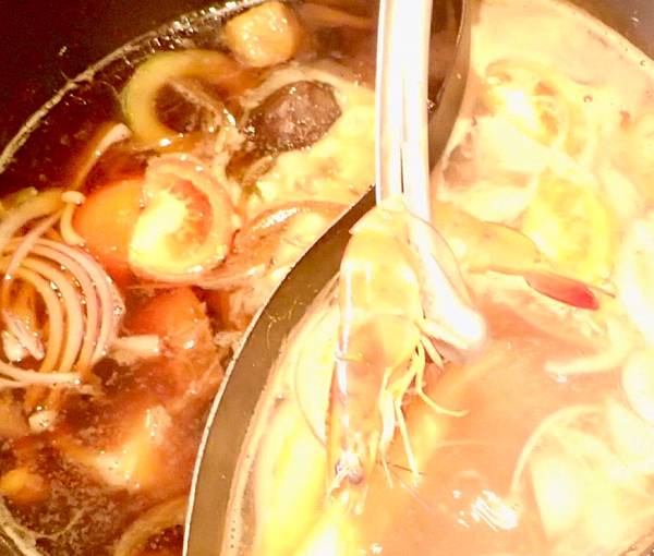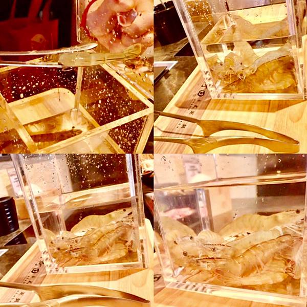 吃到差不多了,我跟我家太后兩人就開始來煮我們活跳跳的活蝦了,店家還有教我們怎麼煮,先用夾子夾一隻然後放進湯裡,然後先不要讓蝦離開夾子,因為他是活的,怕他會亂逃竄,而燙到客人,所以要確保蝦子以昏過去,等到他有點紅了才可離開夾子這樣蝦子就不會亂跳了,這樣現煮的蝦子只有在千荷田日式涮涮鍋看到,很酷的新鮮吃法,新鮮的蝦子吃起來真的肉質特別鮮美,肉質也多汁,還帶有海鮮的新鮮甜味。
