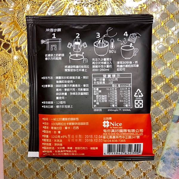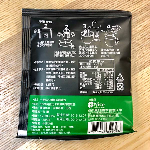 泡好了一杯超香的Drip coffee NO.120的咖啡,一開始熱的味道喝出了堅果的香味,我還習慣在把咖啡放涼一點慢慢品嚐,因為咖啡放涼後還有不同風味出現,放涼後的Drip coffeeNO.120咖啡真的有帶出80巧克力的苦甜味,微微的苦是巧克力那種舒服的苦甜味,讓人感覺超幸福,還有一些焦糖還有太妃糖的甜甜感,咖啡很順口,還有回甘,味道是不酸不苦不澀,尾韻的太妃糖跟焦糖的甜味也帶有一點點天然的焦苦味,一帖咖啡的咖啡真的是好喝,❤️!我愛上了!