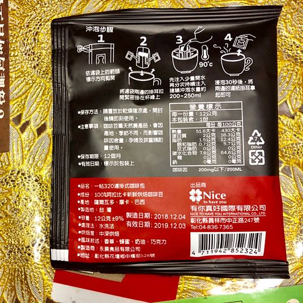 Drip coffee NO.320味道真的喝出奶油的甘醇,不酸苦,水洗豆,喝起來的味道我真的不是很喜歡,但是也是好喝,還有微微的蜂蜜甜味,香草的香氣,是屬於比較中性的咖啡。
