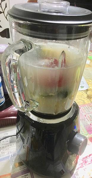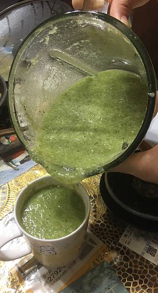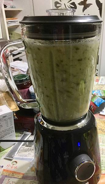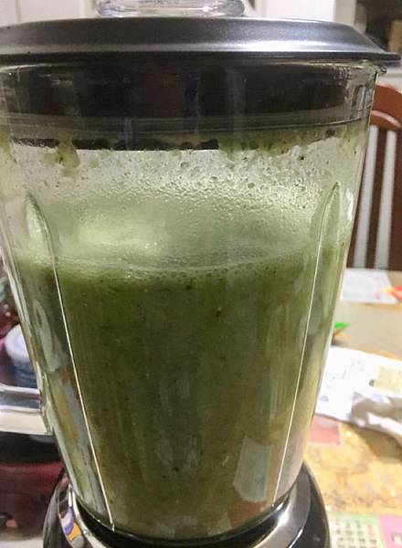 我剛好把之前在賣場買的傑米奧瑞佛的果汁機拿出來打我的綠拿鐵!