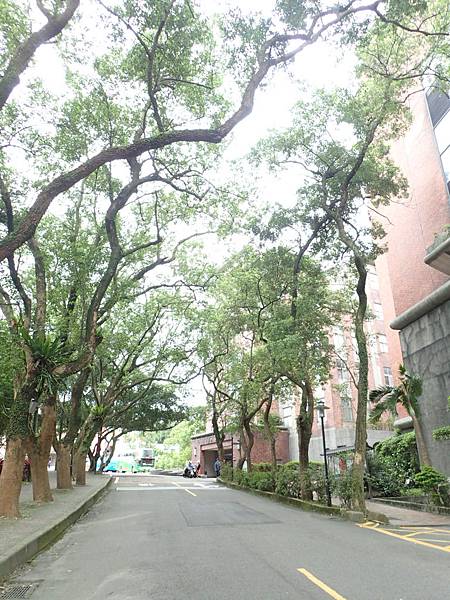 學校是沿著山坡蓋的,所以進入學校就是運動,爬著小山坡,然後兩邊的樹木高大,學校的道路寬敞舒適,兩邊都有人行道。
