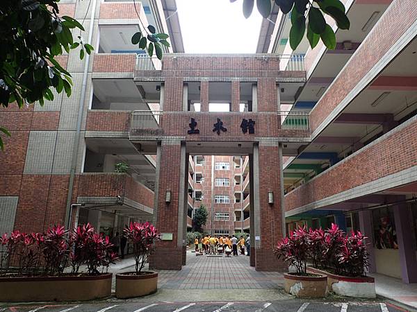 在往宏國德霖科技大學內部走,看到了土木館,發現教室外的設計很棒。