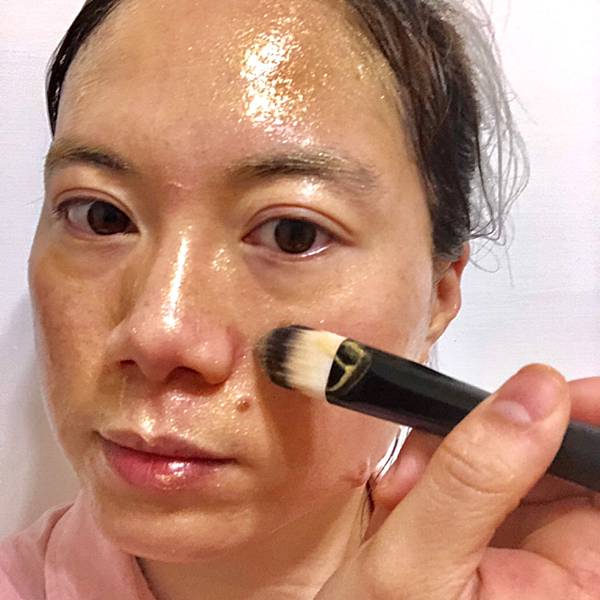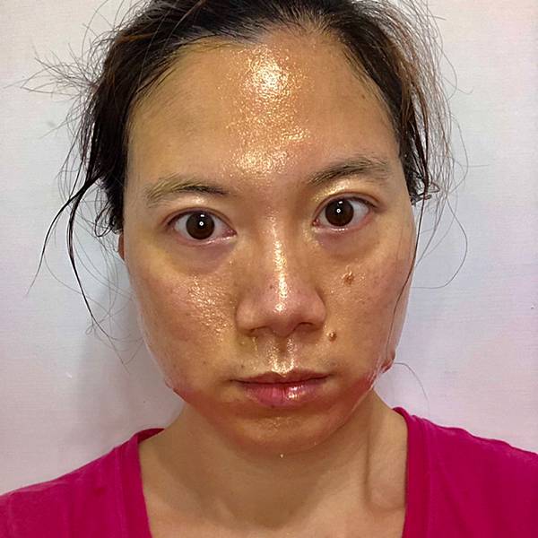 敷完照鏡子後,感覺臉部在發光,金光閃閃的。