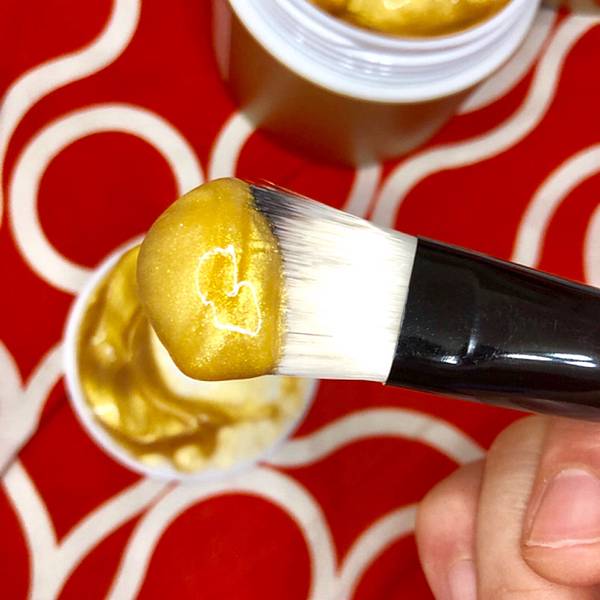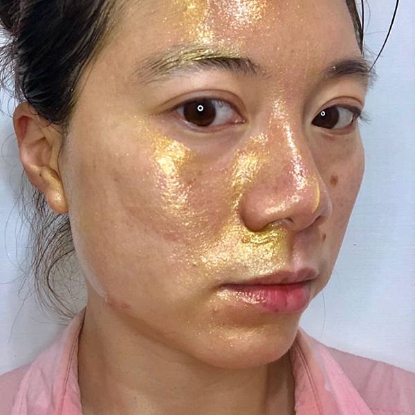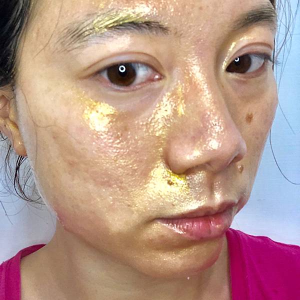 天呀!金黃金黃的,好漂亮唷!把黃金敷在臉上,真的好貴氣唷!