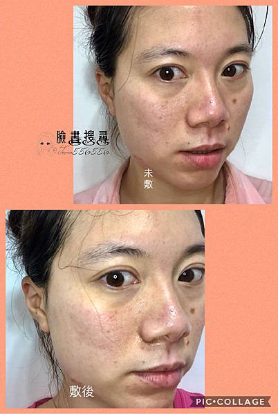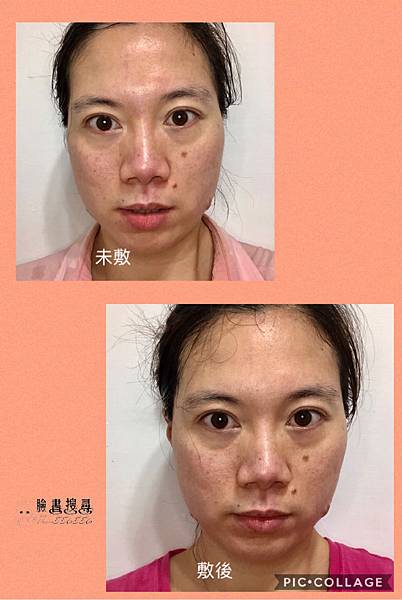 上面兩張照片有敷前敷後的對照,有整臉跟半邊臉的特寫。