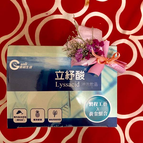 這個產品就是果粒生技的Lyssacid立紓酸固體飲料,照顧我們的身體,還有幫我照顧吃太多的身體,哈哈!順便改變我們的酸性體質。